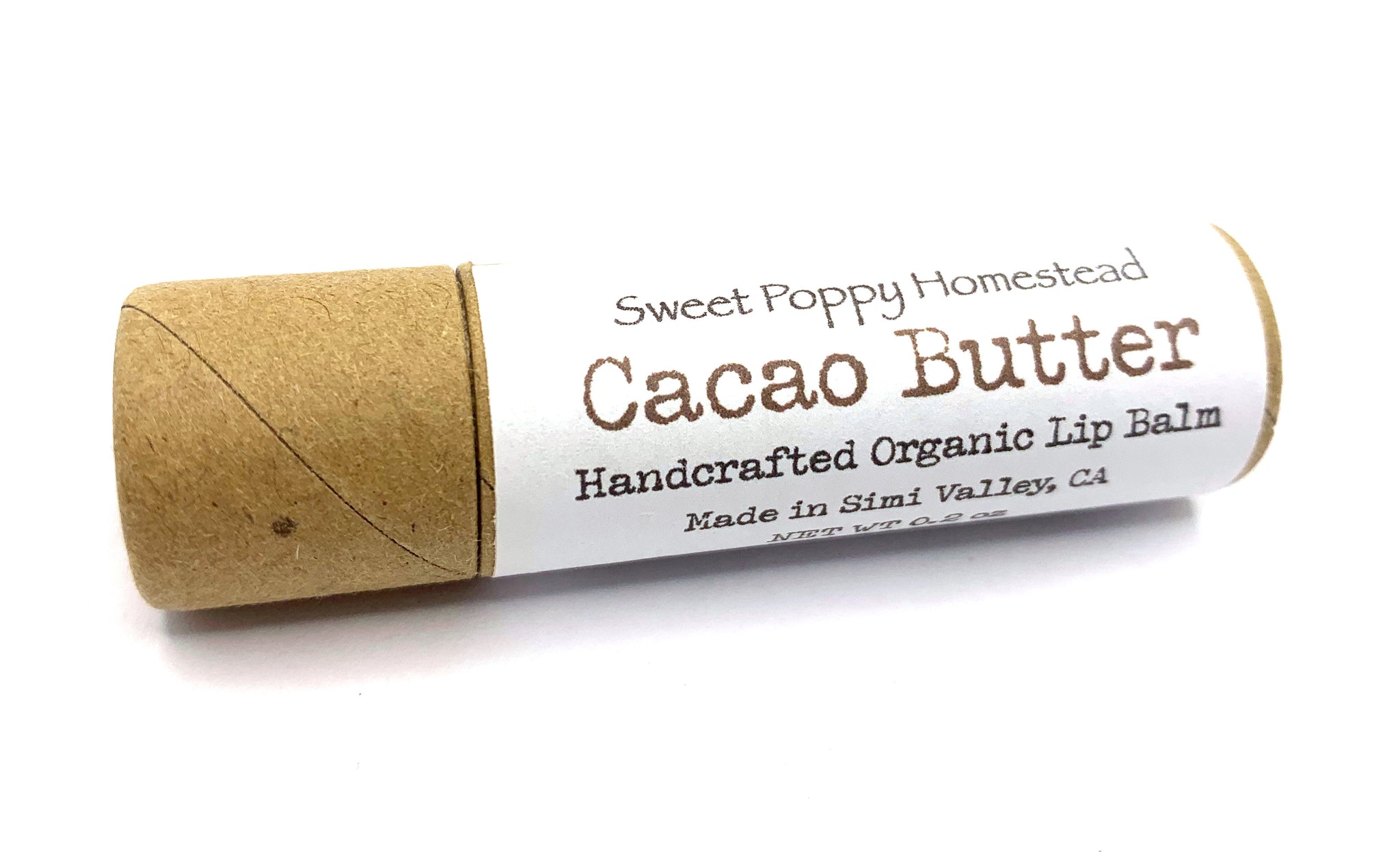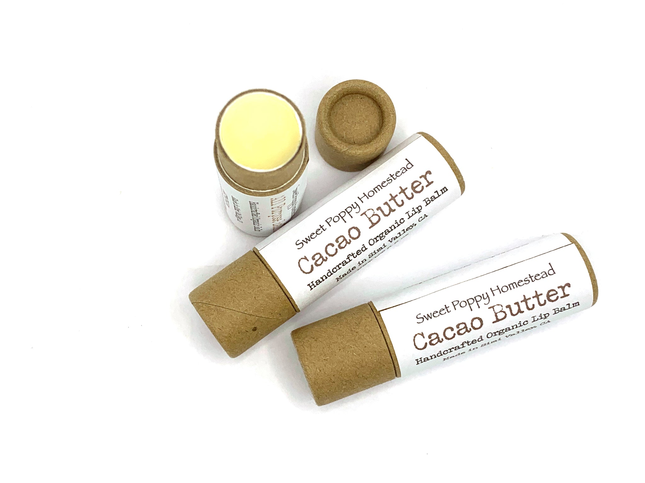 Our 0.2 ounce cacao butter lip balm is unscented, handcrafted, 100% organic, and all natural with high quality purposeful ingredients that help keep your lips smooth, soft, and nourished. Our lip balm has a smooth texture and lasts. Lip balm and packaging are eco-friendly including the lip balm tube that is made of kraft paperboard and is 100% recyclable, biodegradable, and compostable.