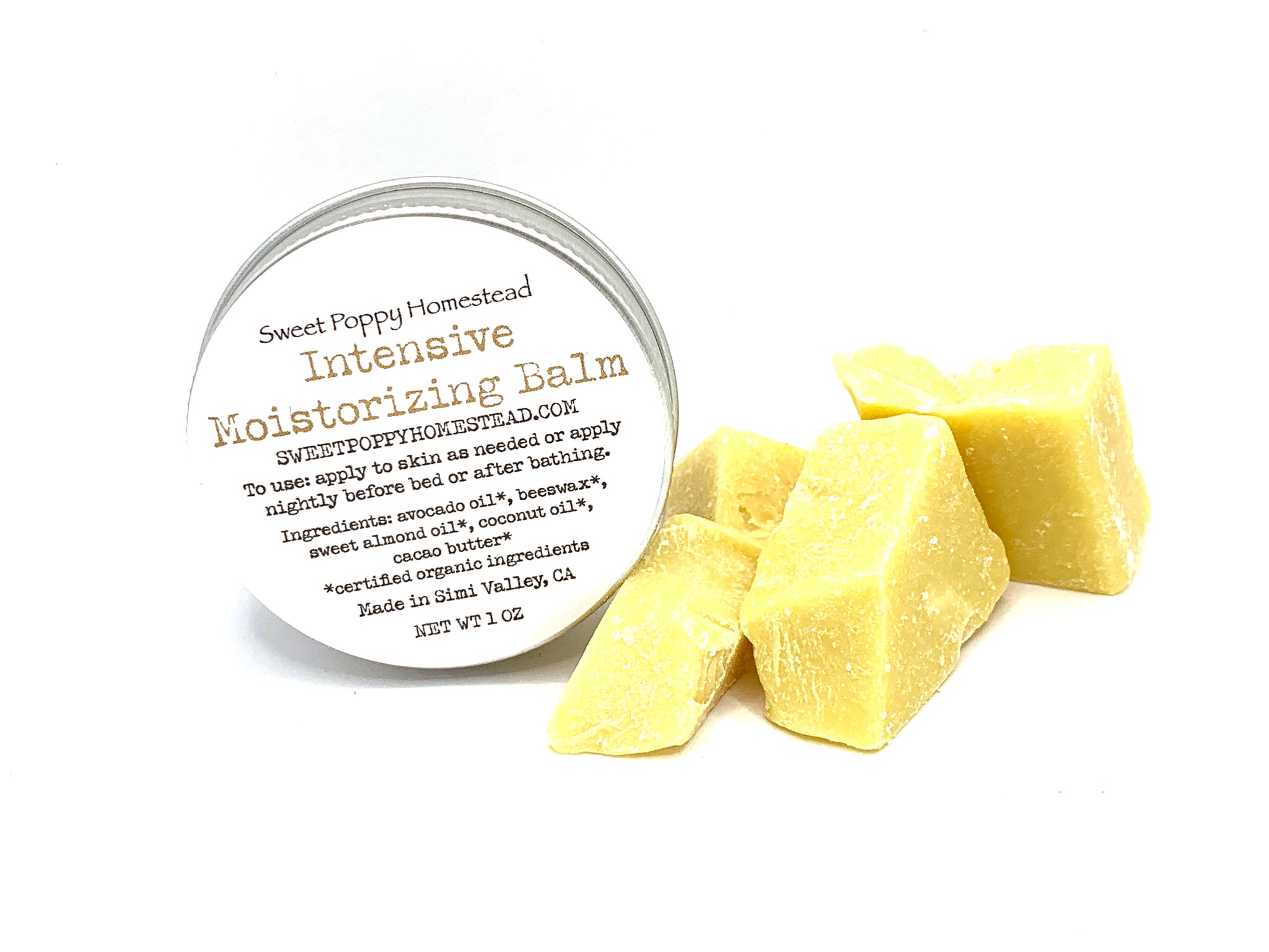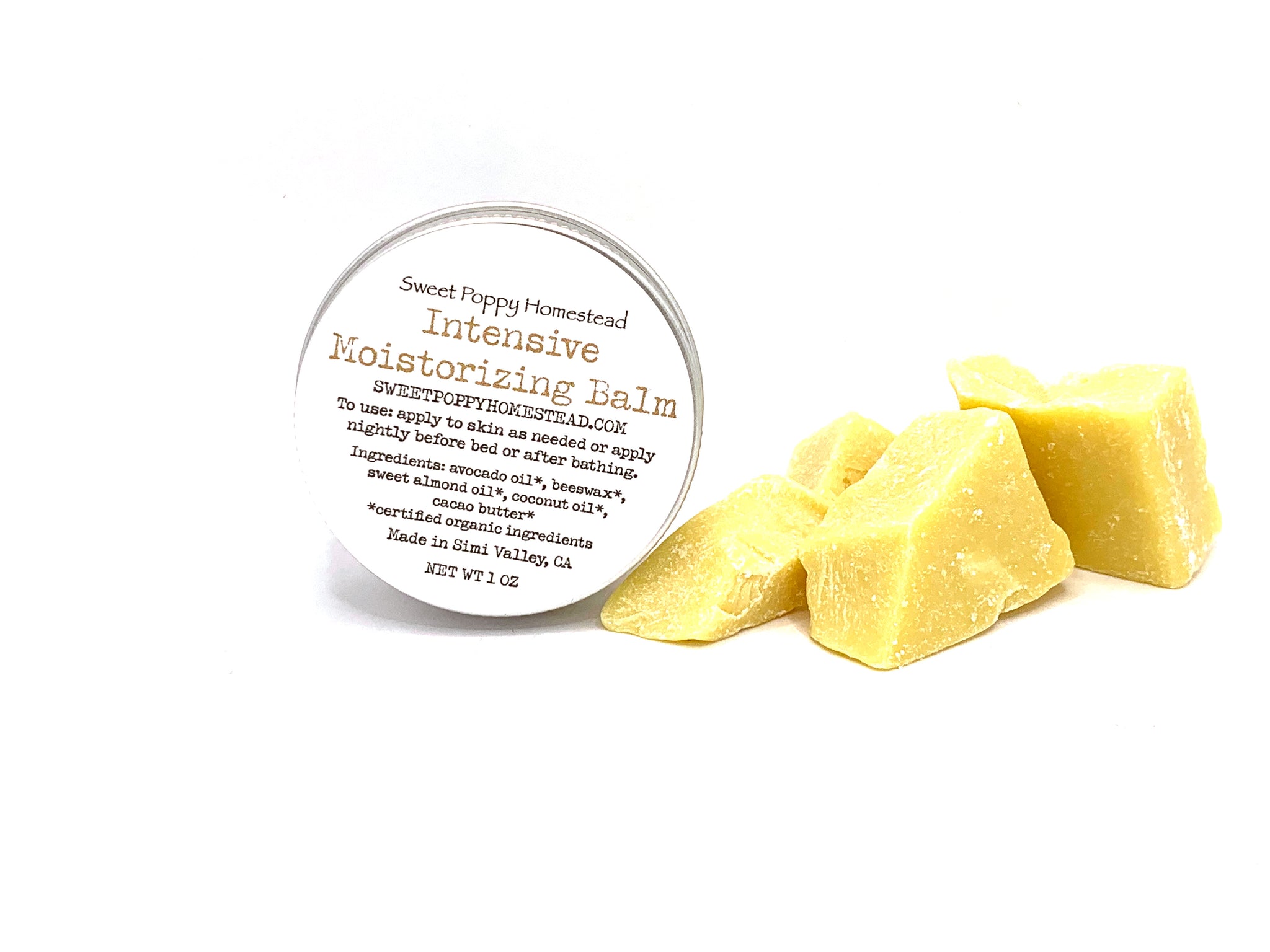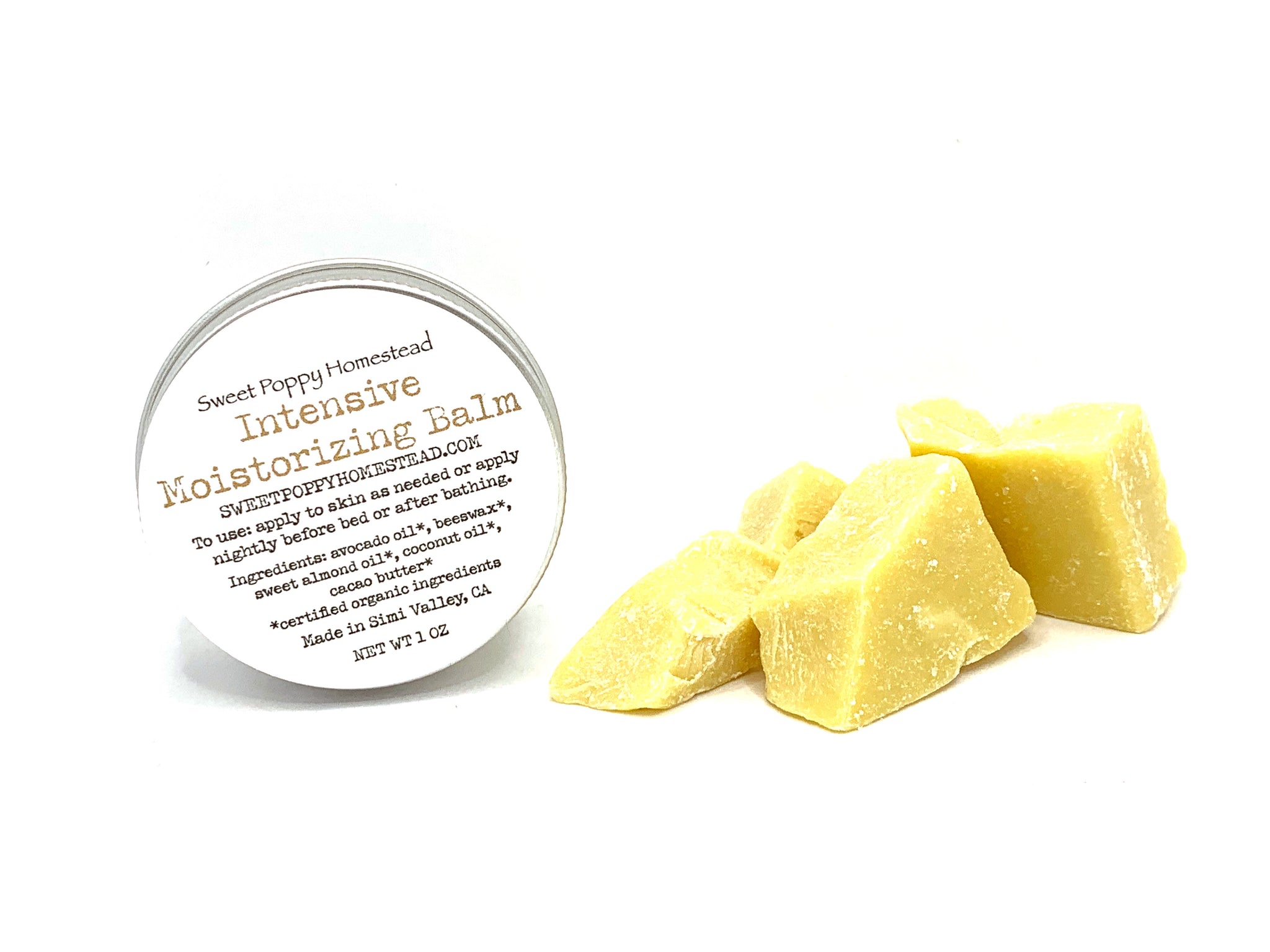 Ingredients: avocado oil*, beeswax*, sweet almond oil*, coconut oil*, cacao butter*