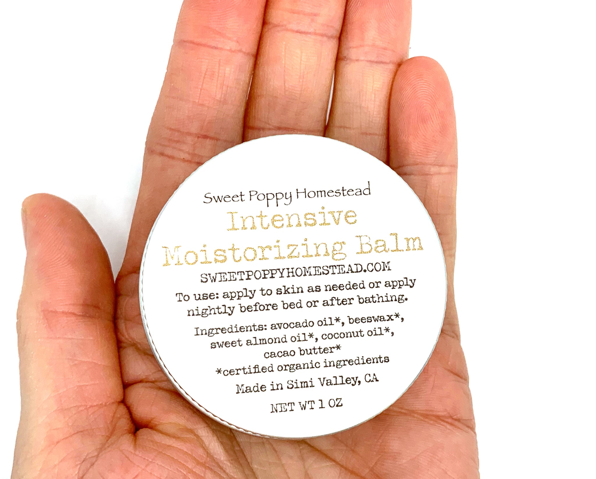 Our one ounce balm is handcrafted, 100% organic, and all natural with high quality purposeful ingredients that help keep your skin smooth, soft, and nourished. Comes in a tin for storage. Great for dry or cracked skin, hands, feet, sensitive skin, eczema, and psoriasis.