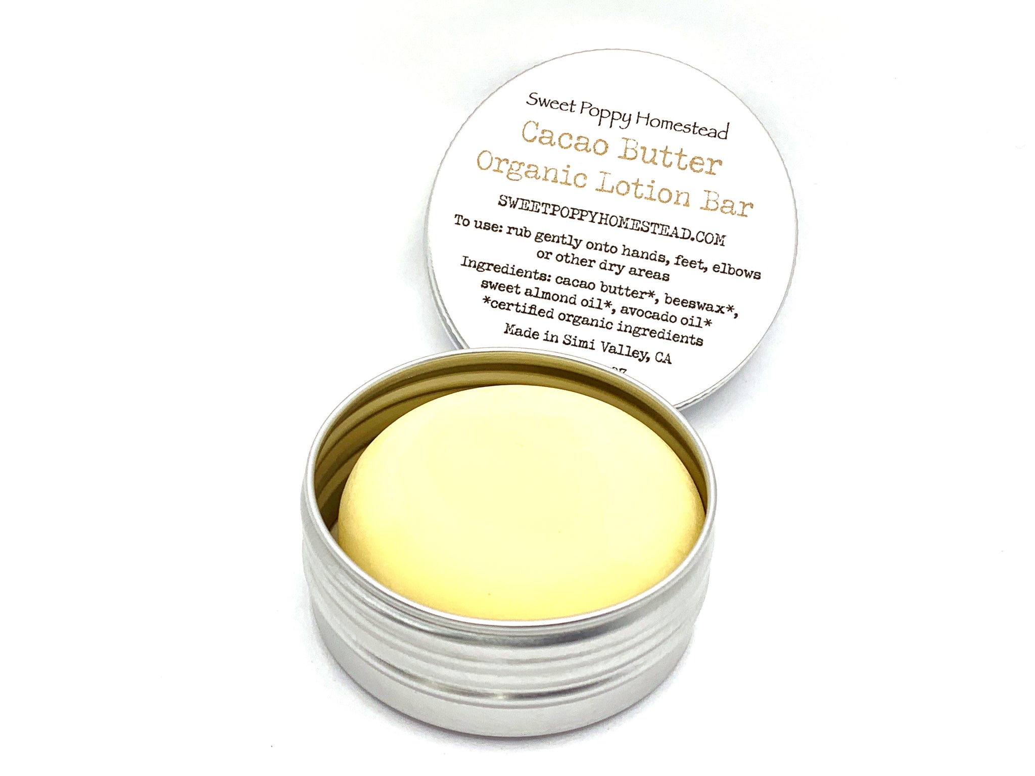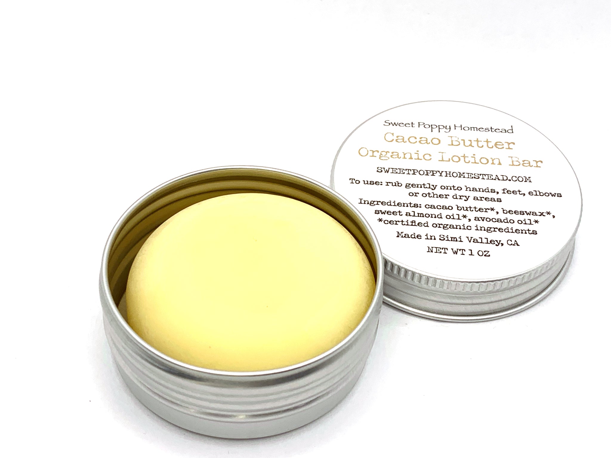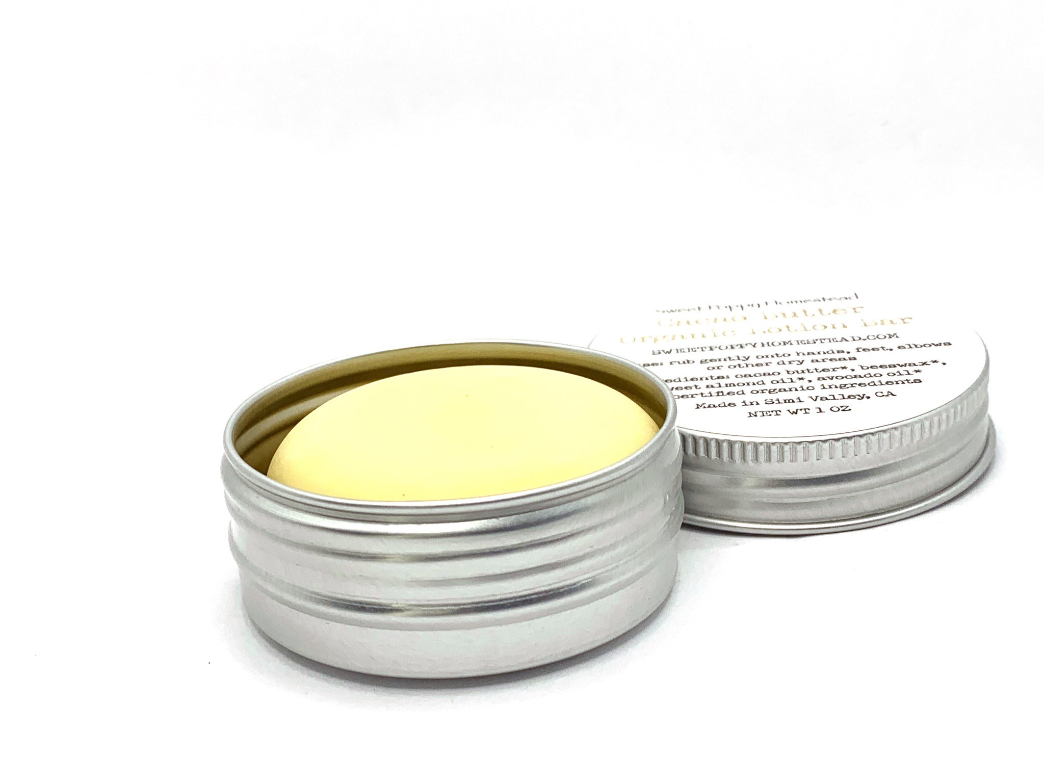 Our unscented one ounce lotion bar is handcrafted, 100% organic, and all natural with high quality purposeful ingredients that help keep your skin smooth, soft, and nourished. Includes a tin for storage. Is a perfect size to fit into your palm or store in your purse/travel bag/diaper bag. Also, our lotion bar and packaging are eco-friendly.